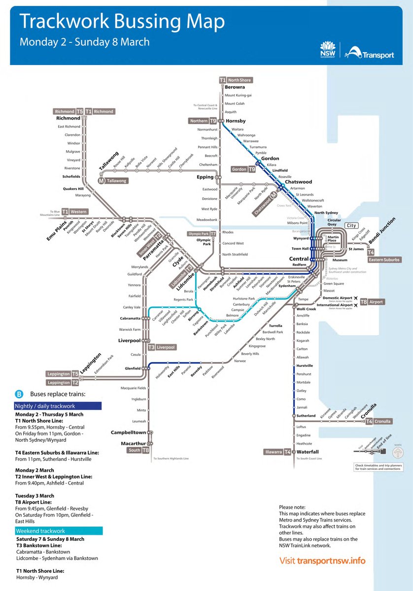 About Trackwork Transportnsw Info from transportnsw.info Sydney trains is a passenger train operator with services extending across the sydney metropolitan area. Sydney trains is the operator of the suburban passenger rail network serving the city of sydney, new south wales, australia. Buses will replace trains between gosford and wyong from boxing day to noon on new year's eve. Did you see anyone else doing it, or was it just you? Updated 3 years ago · author has 70 answers and 146k answer views. Includes detailed timetables, trackwork announcements, station descriptions. Here's the update on scheduled trackwork here's the update on scheduled trackwork affecting services. , lives in sydney, australia.
